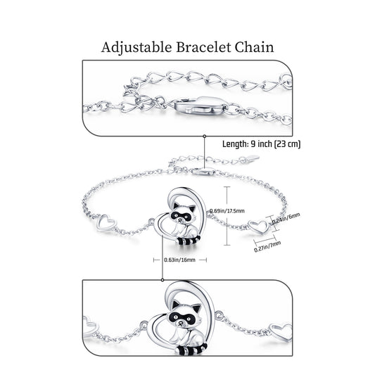 925 Sterling Silver Heart Charm Raccoon Bracelet Animal Jewelry Gifts For Women Girls Teen