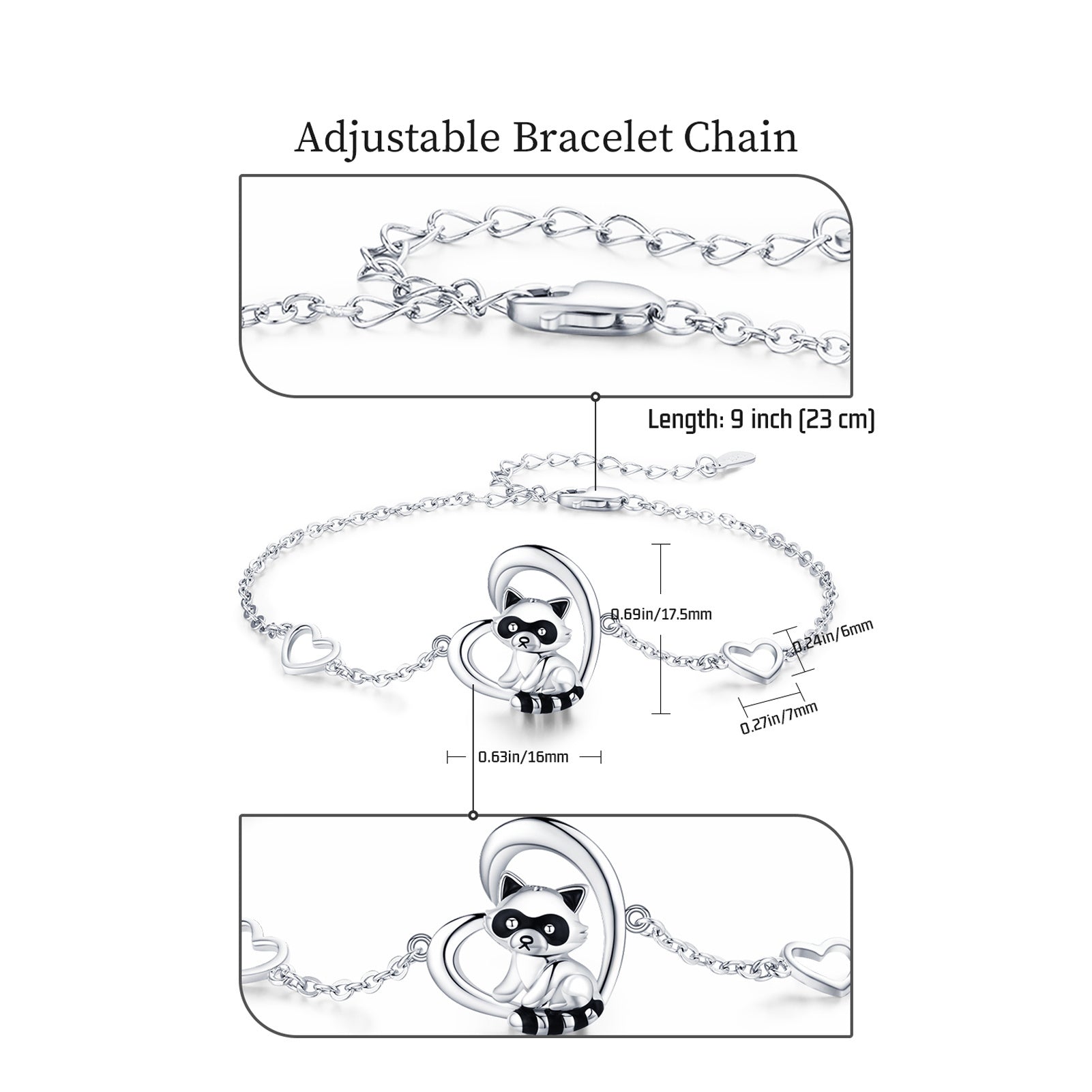925 Sterling Silver Heart Charm Raccoon Bracelet Animal Jewelry Gifts For Women Girls Teen